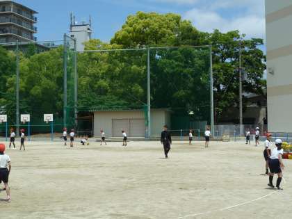 子どもたちも慣れないラグビーボールで投げたり受けたりするのにうまくいかないようでした。これから学習をしていく中で、ボールをうまくパスしたり、受けたりできるようになっていくことと思います。