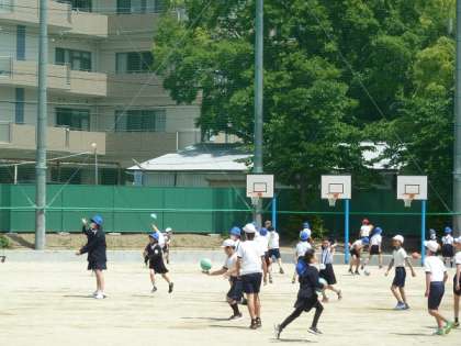 この日は1・2年生は遠足で学校にいない日だったのですが、多くの子どもたちが元気よくボールを使っての遊びを楽しんでいました。