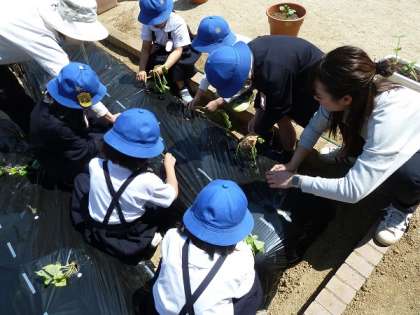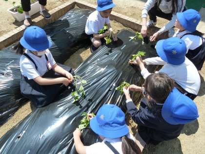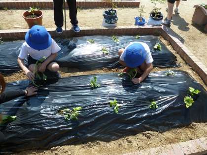 2年生は野菜に続いて、さつまいもの苗を植えています。