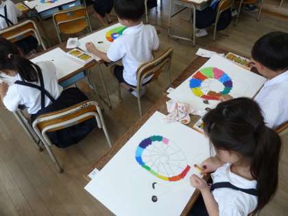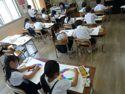 いろいろな色を使って、「にじいろのかたつむり」ができあがりました。