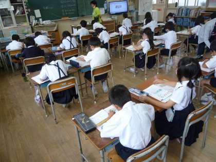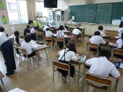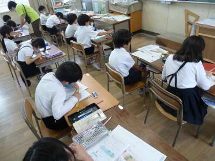 長さの学習で、みんな30cmの竹の定規を使って、まずは「定規を使った線の引き方」を学習していました。