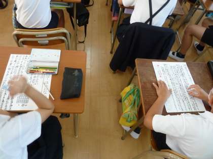 子どもたちは自分で調べたことをまとめて新聞のような形で表すことに取り組んでいました。