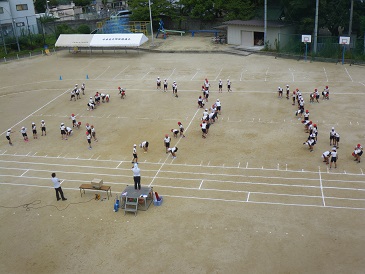 団体演技の練習が、ダンスを学ぶことから、運動場での隊形も含めた練習へとうつっています。3・4年は、声やうでのふりも大きく、とても上手です。本番が楽しみです。