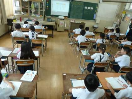 大きさを比べるには、上の位の数字を見て大きさを比べればよいということを子どもたちは一つずつ確認をしながら理解していました。
