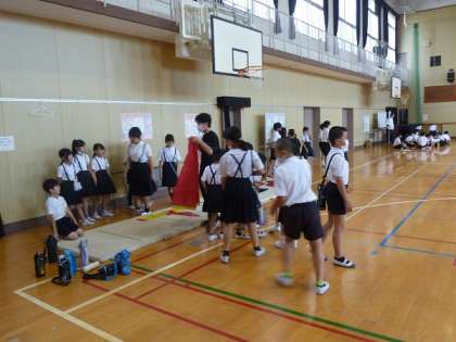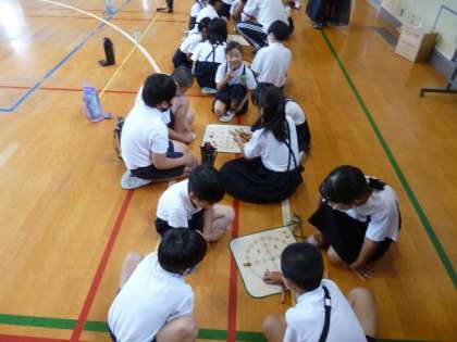 それぞれのコーナーでは、5年生が3年生にやさしく教えていました。