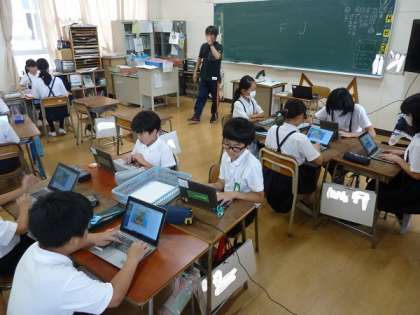 パソコンクラブでは、キーボード入力の基本、ホームポジションについての話がありました。左手の人差し指は「F」のキーボードへ、右手の人差し指は「J」のキーボードに置くことです。まずはこの位置と指遣いを基本として、他の指も同様に文字入力の仕方を身に付けていくといいですね。