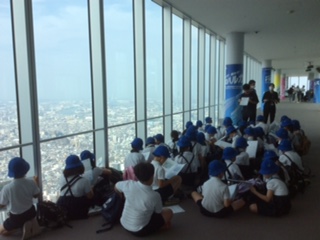 これからグループに分かれて、大阪の街を空の上から観察します。