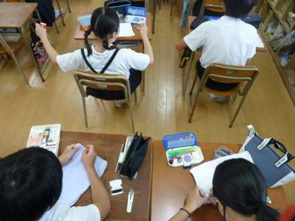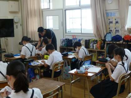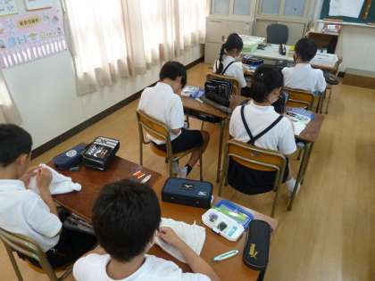 6年生は、なみ縫いでぞうきんを作っていました。みんな静かに作業に手中して取り組んでいました。