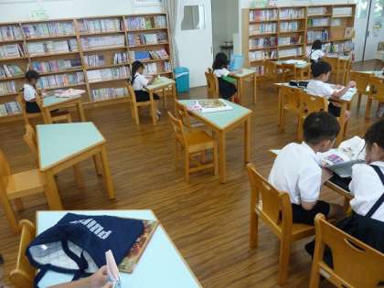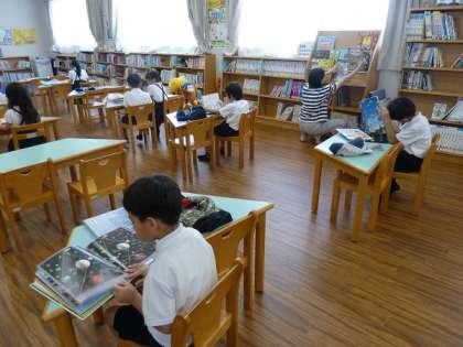 1年生の子どもたちも図書室で本を借りたり、静かに読んだりすることにすっかり慣れてきたようです。