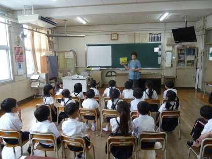 今日はパンジーの方々にお越しいただき、子どもたちに本の読み聞かせを行っていただきました。中本小学校でのこのお話会も10年以上続いているものになります。