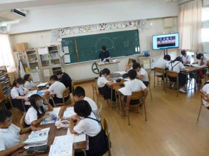 月の形の見え方と太陽の関係をしらべようということで、学校朝会でした校長先生の話と関連した内容でした。