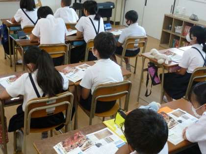 教科書にある挿絵を見て考えられることを見つけて、当時の様子を想像していました。
