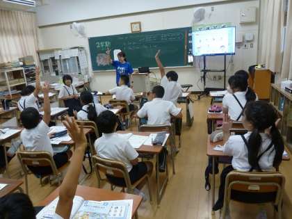 質問をお友達にする役割、質問されて答える役割とどちらになっても子どもたちは英語でやりとりできていました。