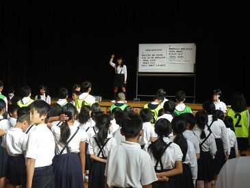 中本小学校では、秋の遠足に縦割り班で大阪城公園に行きます。秋の遠足を「なかよし遠足」と呼んでいます。そして、中本小学校にはオリジナルの歌「なかよし遠足のうた」があります。遠足当日、「なかよし遠足のうた」を歌って、遠足を出発します。