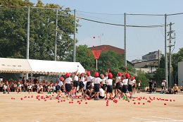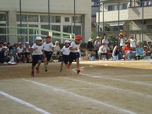 1年生は小学校での初めての運動会でした。コーナーを走る姿、玉入れの玉を一生懸命投げる姿、とてもかわいらしく、とてもがんばっていました。