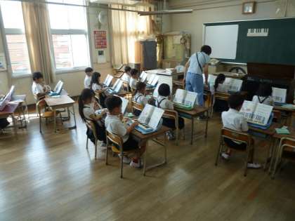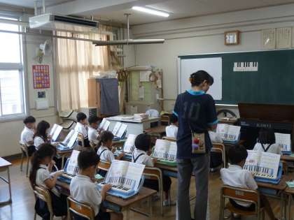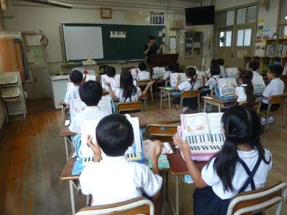 1年生の音楽の時間は、鍵盤ハーモニカを使って演奏の練習でした。