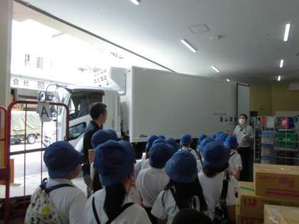 普段は見ることがない、お店のバックヤードと呼ばれるところを案内していただき、店の売り場の裏側でもお店の人たちがいろいろなお仕事をしていることや、売り場での工夫などお話をしていただきました。