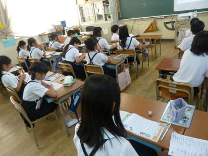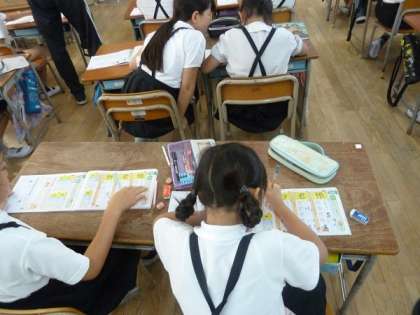 3年生の国語の学習の様子です。この時間は新出漢字の練習と主語と述語を見つける練習問題を行っていました。