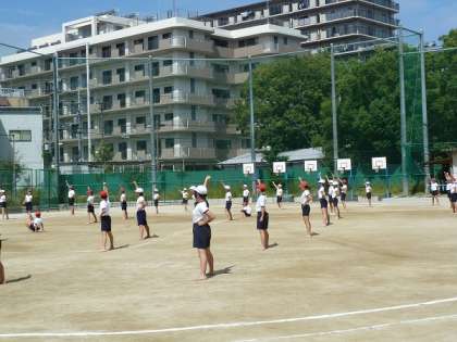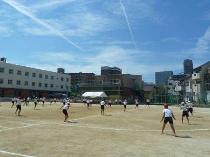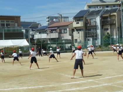 先日の5年生の団体演技の練習の様子です。運動場での位置を確かめて、曲にのせて力強く踊っていました。