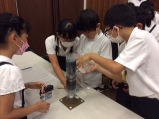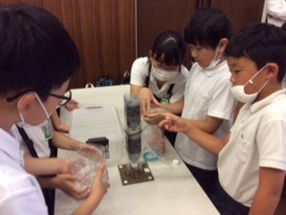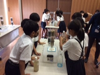 水がどのようにして綺麗にろ過されていくのかを実験して確かめていました。