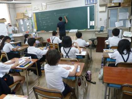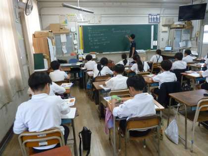 4年生の算数の時間です。この日は、たし算、ひき算、かけ算、わり算が混じった計算の仕方の学習でした。一つの式の中にたし算やひき算やかけ算、わり算が混じっているときの計算の順序に決まりがあることを知り、正しく計算できるように取り組んでいました。