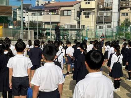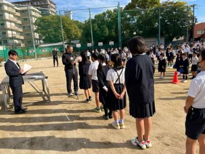 その後の月曜日の朝の児童朝会では、今年行った「全国体力、運動能力調査」における東成区の記録で上位だった児童へ表彰状を渡していただきました。