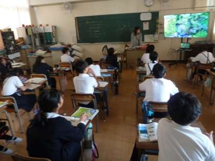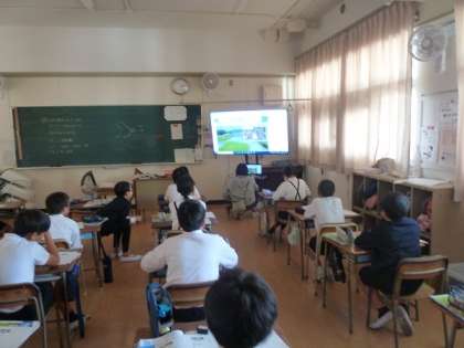 5年生の理科の学習の様子です。この時間は川が流れている場所(上流、中流、下流)によって違いがあるのかどうかということをめあてとして子どもたちが動画や写真を見ながら見つけていました。