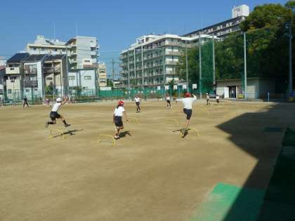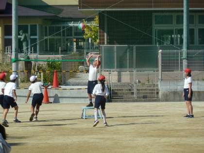 この日の4年生の体育は、1組がハードル走、2組はポートボールをしていました。