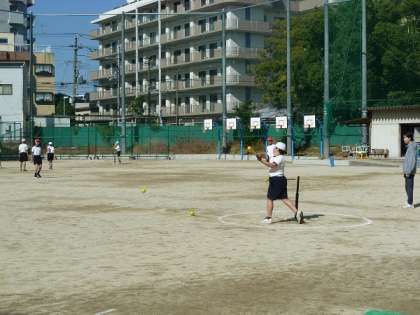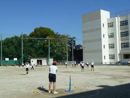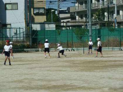 5年生の体育は、ボールを使った野球型の運動をしていました。