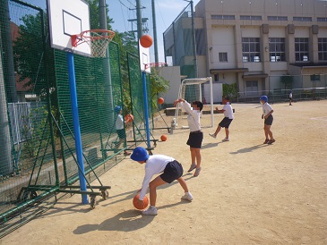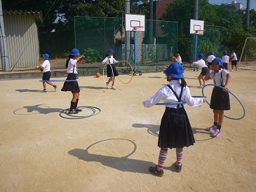 運動週間は、今週で終わりです。2・3週目は、体育倉庫を開放して、普段使うことのできないボールや道具を使うことができます。バスケットボールやラグビーボール、フラフープ…。
