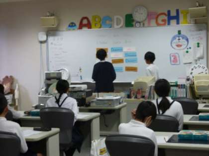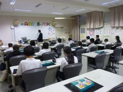 これは英語の授業を受けている子どもたちの様子です。