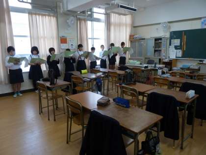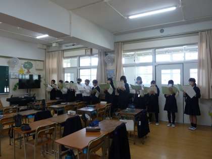 6年生が音楽で歌唱の練習をしていました。男女混じって低音部と高音部に分かれての歌唱練習でした。お互いに励ましあう声かけをしながら一生懸命取り組んでいました。