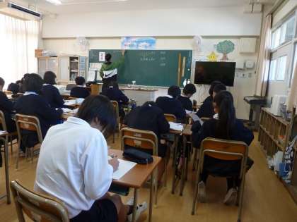 この時間の算数は、いろいろな形の体積の求め方の学習で、教室内にある物のおよその形を学習した立体に見立てて、およその体積を出していくというものでした。