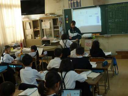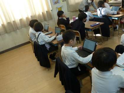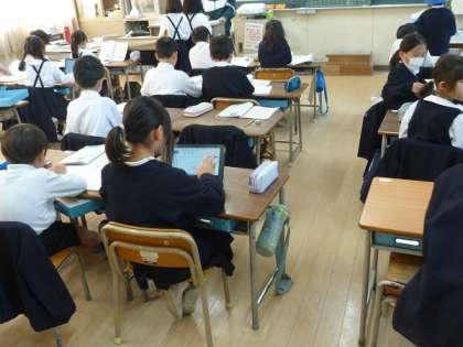 練習問題が終わった児童は、一人一台端末を利用してデジタル教材で個別の学習に取り組んでいました。