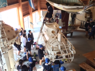 海の博物館は、漁や船、海についてなど、さまざまな展示があります。普段、海となかなかふれる機会のない子どもたち、興味津々で見学しています。