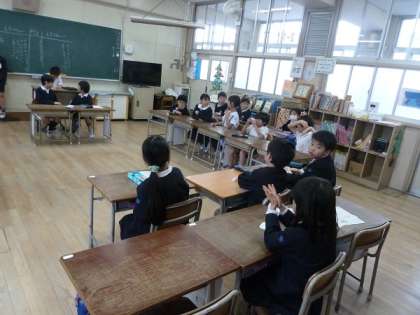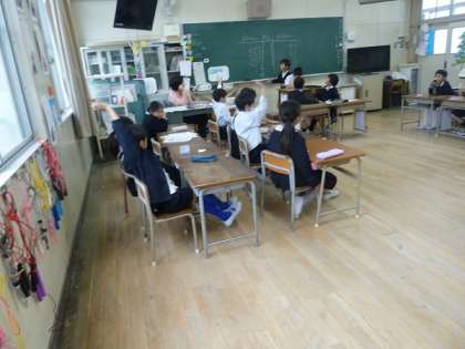 2年生の学級活動の様子です。学年で栽培している畑への水やりについてみんなで意見を出し話し合っていました。