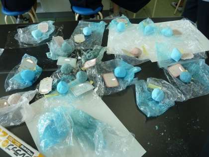 6年生の理科の学習です。「バスボム」作りをしていました。