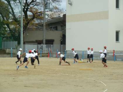 3年生の体育はベースボール型のゲームを行っていました。