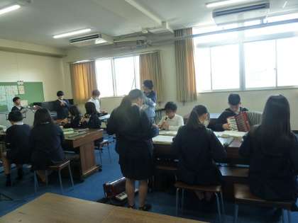 6年生が音楽の時間に、合奏と歌の練習をしていました。年が明けて卒業間近の頃にお披露目となるそうです。