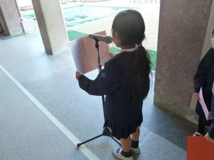 昨日、2学期の終業式を行いました。今回は講堂が工事中ということで、放送で行いました。子どもたちは教室で自分の席にすわって話を聞くのですが、低学年の教室の様子を見にいくと、子どもたちは姿勢良く座り、しっかりと放送を聞いていました。