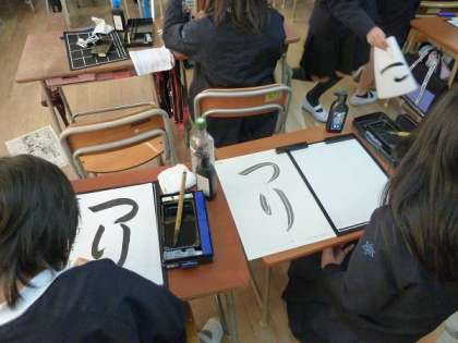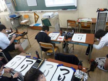 3年生は習字で「つり」という文字を書いていました。筆を使って文字を書く機会が普段はあまりないので、貴重な学習ですね。