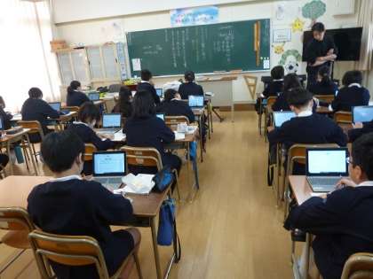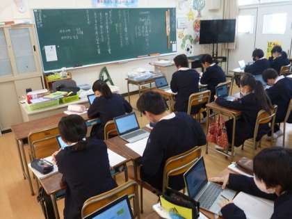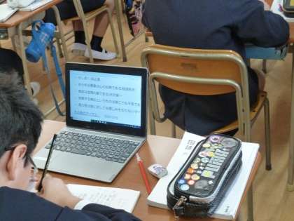 6年生の国語の学習で、タブレットを使って子どもたちは名言、格言について調べていました。