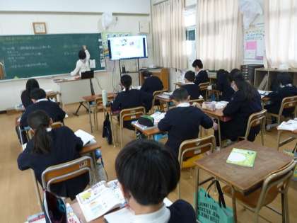 世の中はすごいスピードで情報化社会となり、今やインターネットを使った情報は多くの産業で役立てられています。私たちの身近にあるコンビニエンスストアでの情報の活用の仕方について教科書を見ながら、自分たちでも気づいたことなどをまとめていました。