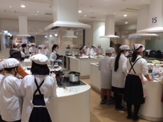 ハグミュージアムとは、食と住まいの情報発信拠点「hu+g MUSEUM(ハグミュージアム)」のことで、人(human)とガス(gas)が出会う場であり続けたいという思いを込めて名づけられたところです。ここで、最新のガス調理機器を使って、みんなでキッチン体験しました。