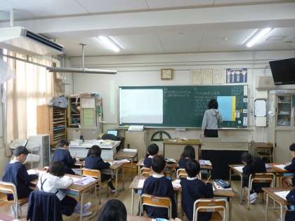 1年生の算数の学習です。1〜100までの数を並べたのを見て、気づいたことを発表していきました。