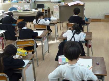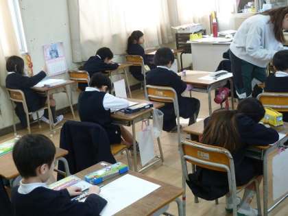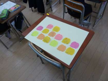 この日、2年生の教室では、給食調理員さんへの感謝のメッセージづくりを行っていました。普段給食調理員さんがどんなことをしてくれているか、思い出してそれぞれがメッセージを紙に書いていました。