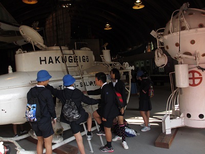 1日目、夕食の後、実際に海女として活躍されている方からお話を聞きました。その話を聞いたうえで、2日目は海の博物館を見学しました。小学校の周りには海はありません。たくさん海にふれ、この海の博物館で学んだことは、子ども達にとってとても新鮮だったと思います。海女さんの話に出てきた道具や様子が再現されていて、さらに学びが深まったことともいます。