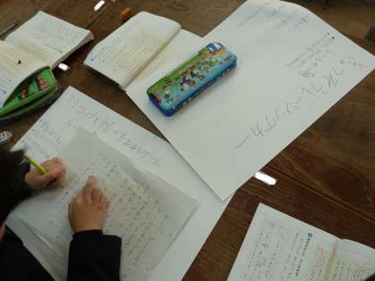 2年生の国語の学習で、遊びを考えてそれをうまくどのような説明の仕方をすると相手にうまく伝わるか、文章にして書くという学習に取り組んでいました。