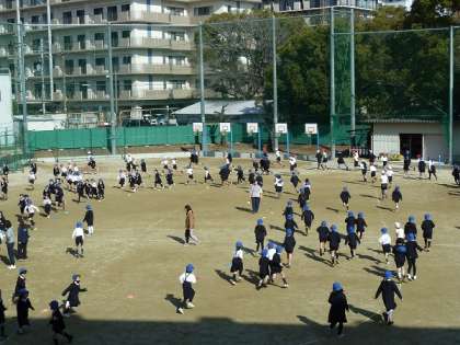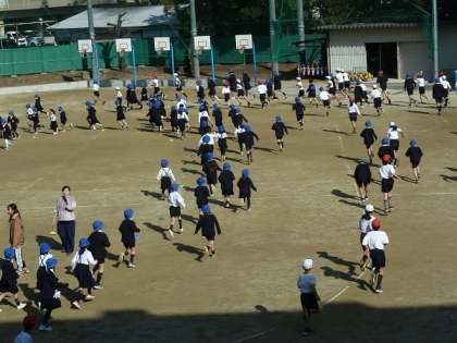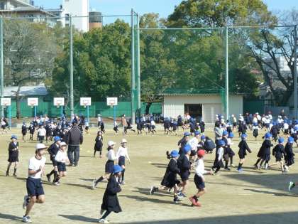 今週は15分休憩の時間は、1〜6年の児童がかけあし運動に取り組んでいます。