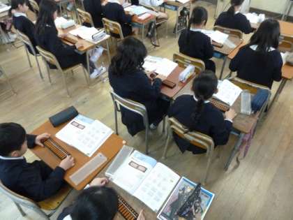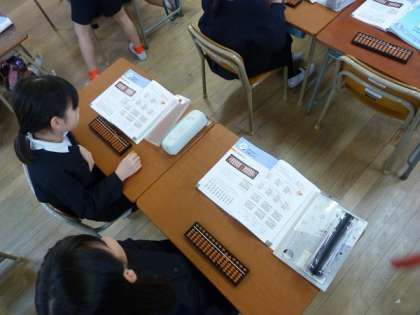 この時間はそろばんの5玉、1玉を覚えて数字をそろばんで表すという活動をしていました。